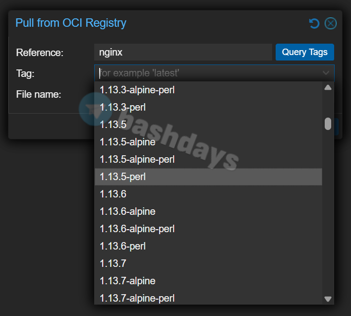 В поле Tag указываем с каким тегом будем вытягивать образ. У меня это будет latest. Но ты в праве вытащить любой нужный.