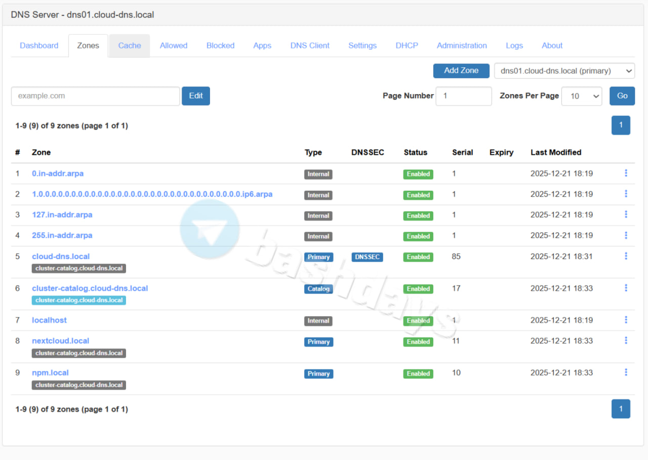 Теперь при добавлении новой зоны на первой ноде, эта зона улетит на вторую ноду. Главное не забыть выбрать Catalog Zone при добавлении зоны.