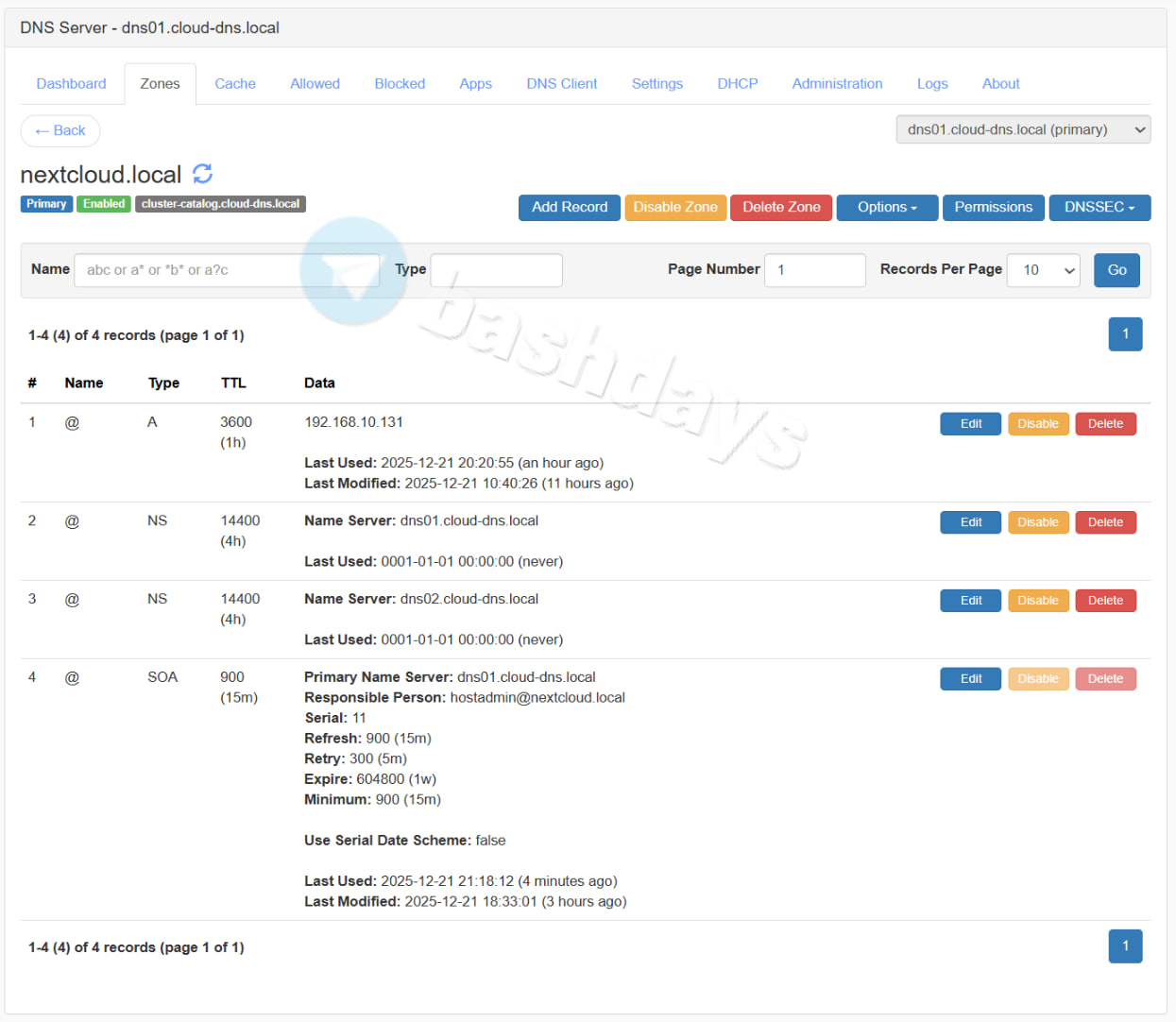 Зоны добавляются в разделе Zones, после добавления зоны, создаешь «A» запись например для домена nextcloud.local и прописываешь IP своего nginx proxy manager (далее NPM), ну а дальше в NPM разруливаешь на нужные IP адреса и порты.