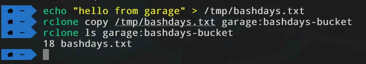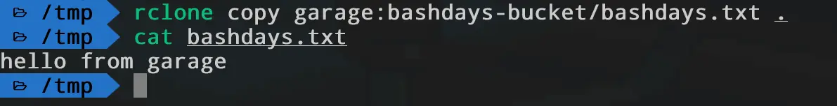 rclone copy /tmp/bashdays.txt garage:bashdays-bucket