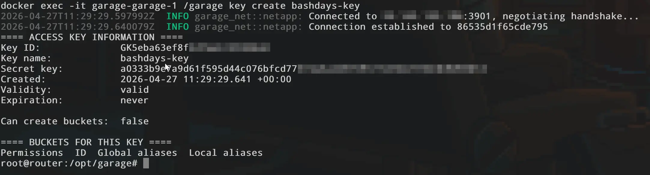 docker exec -it garage-garage-1 /garage key create bashdays-key