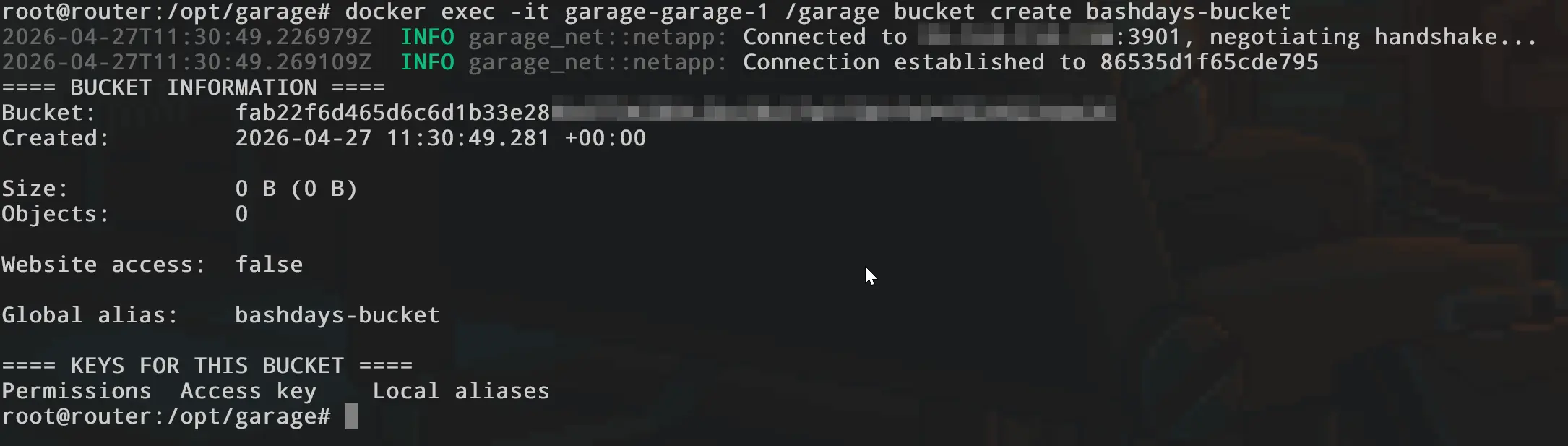 docker exec -it garage-garage-1 /garage bucket create bashdays-bucket