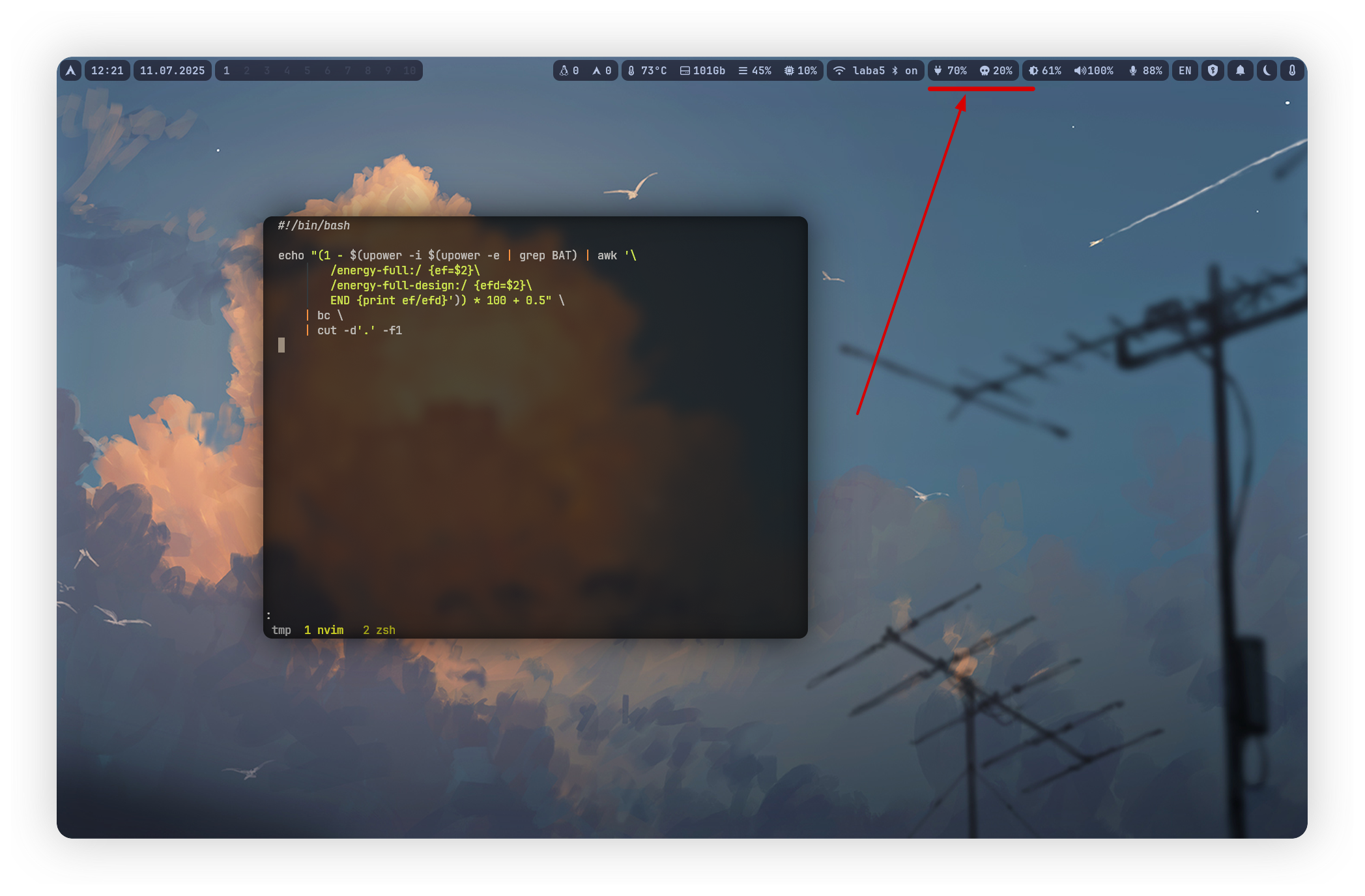 ЧИТАТЬ ПЕРВЫМ В ТЕЛЕГРАМСначала мы поймём, как найти нужное значение, а затем создадим красивый минималистичный модуль для waybar.