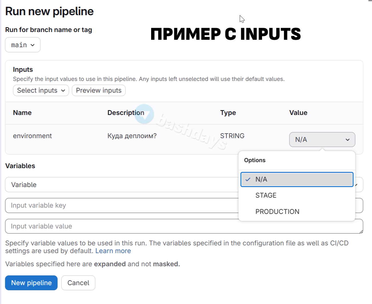 Options vs inputs в GitLab CI, что выбрать и как настроить