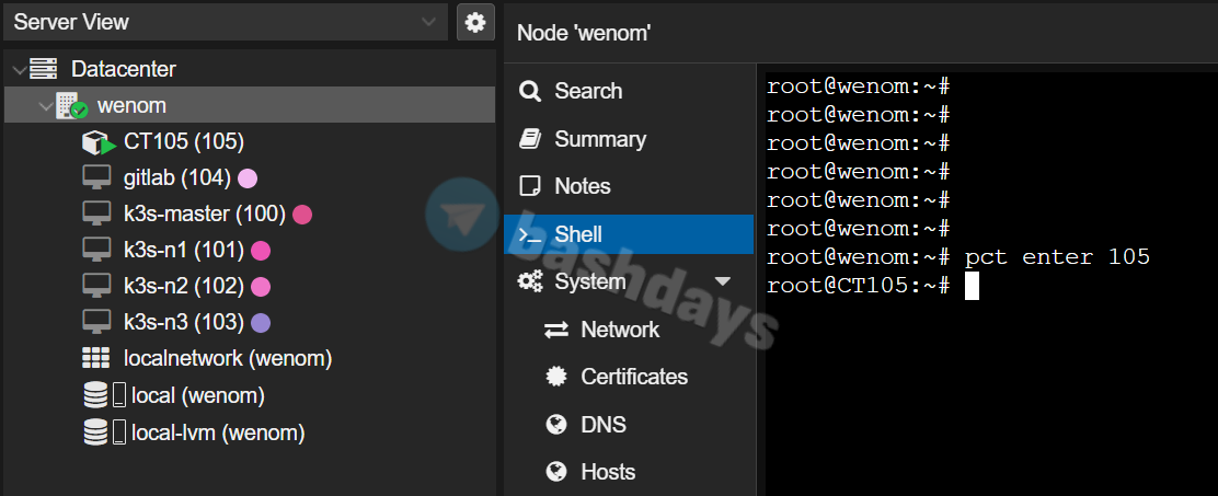 НО, если перейти в Proxmox во вкладку Console, то нет привычного шелла. Как быть и как управлять этим дерьмом?