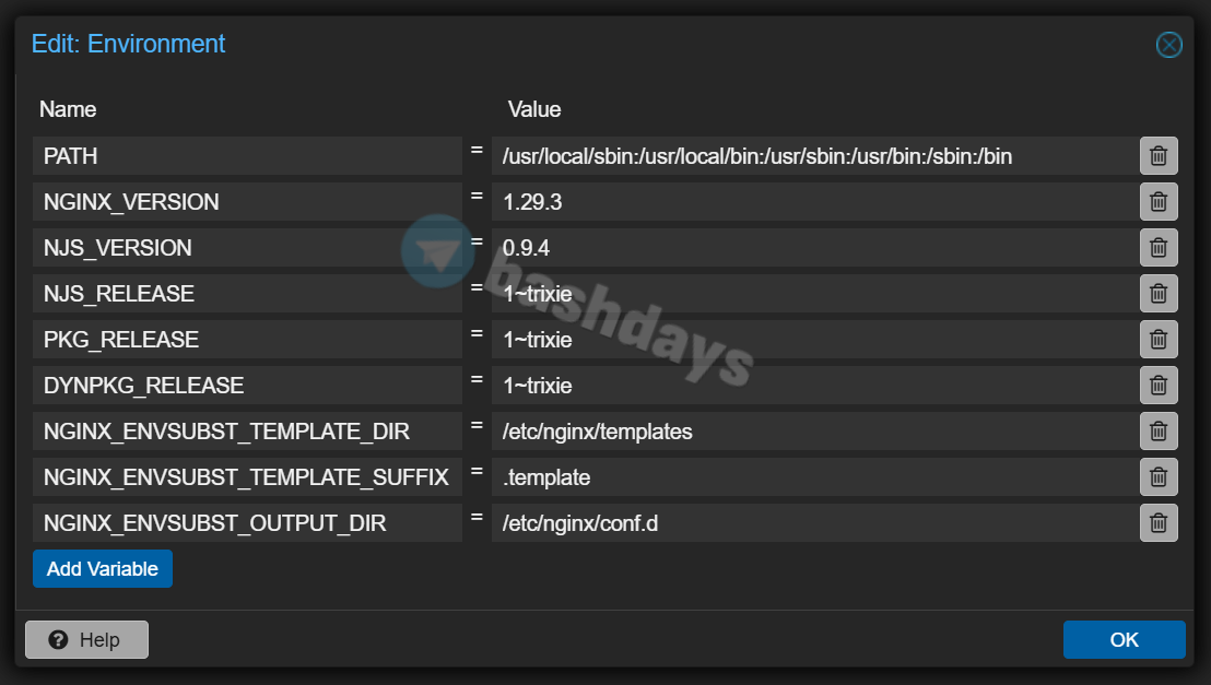У каждого такого контейнера есть переменные, которыми можно управлять. В Proxmox переходим в контейнер, открываем вкладку Options и видим Environment