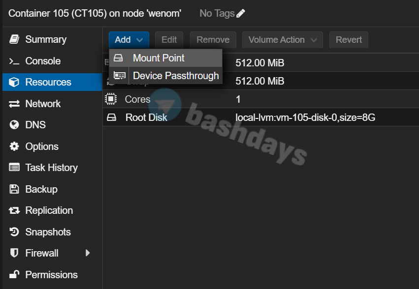 Чтобы в контейнер прокинуть хранилище или внешние устройства, делается по классике, через Mount Point: