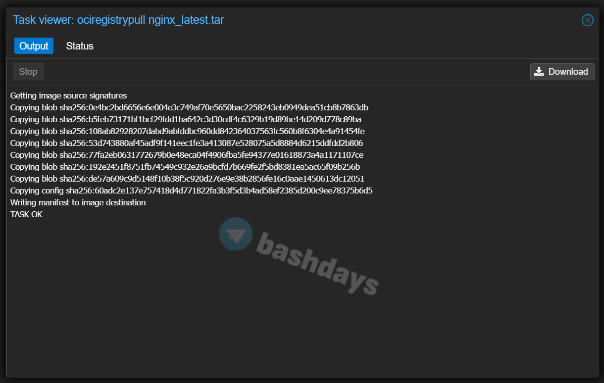 Ну и всё. Жмем кнопку и наблюдаем как скачивается OCI образ:
