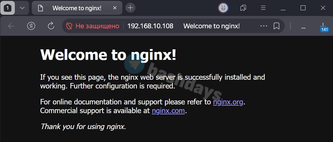 Вот и всё, LXC успешно запущен и в нем крутится nginx:latest